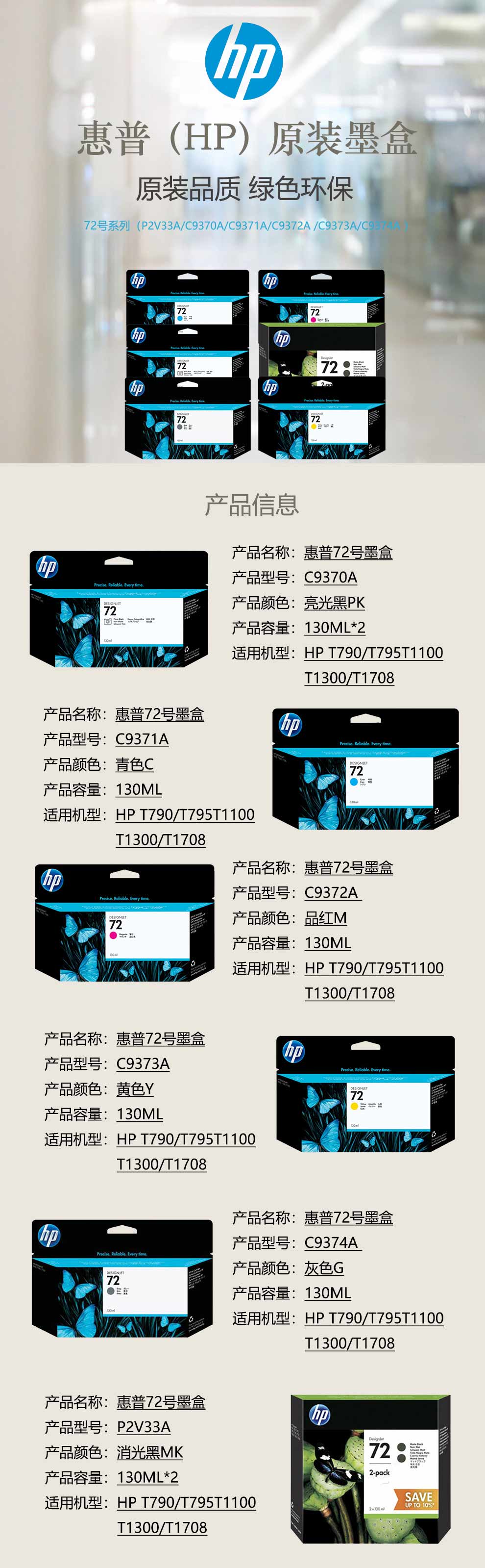惠普(HP)72號(hào)墨盒 T790/T795/T1300/T1100/T1708原裝墨盒