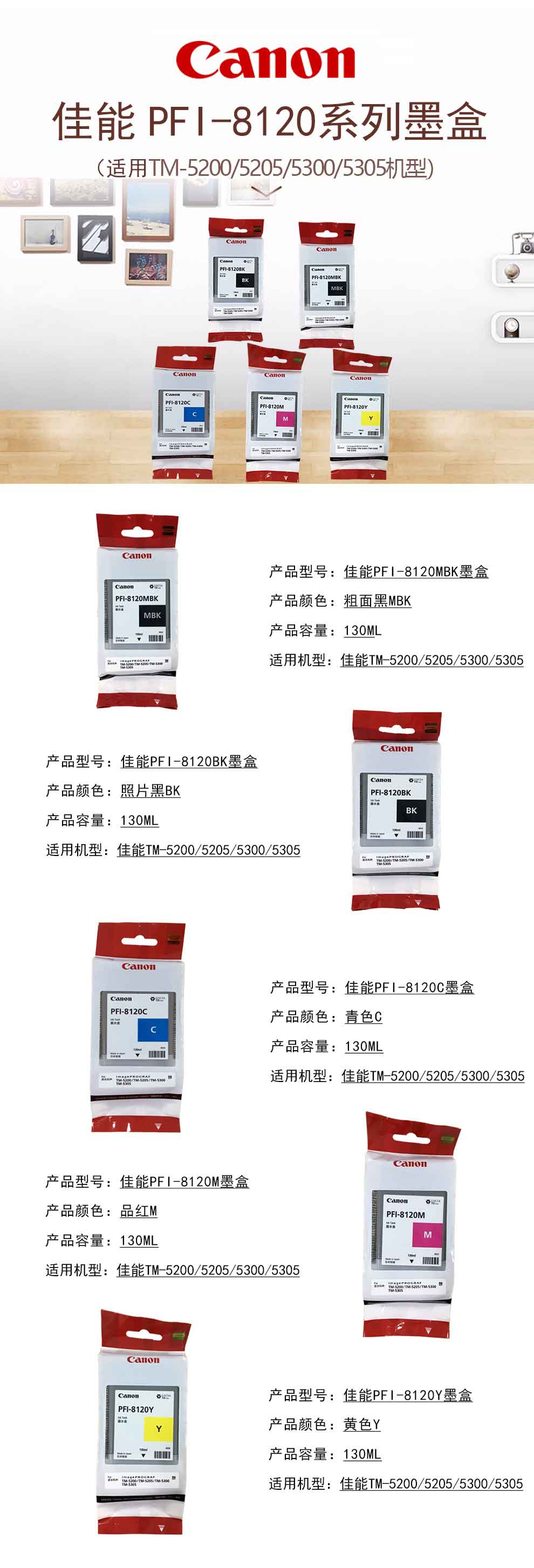 佳能(Canon)TM-5200/5205/5300/5305墨盒(130ML)PFI-8120