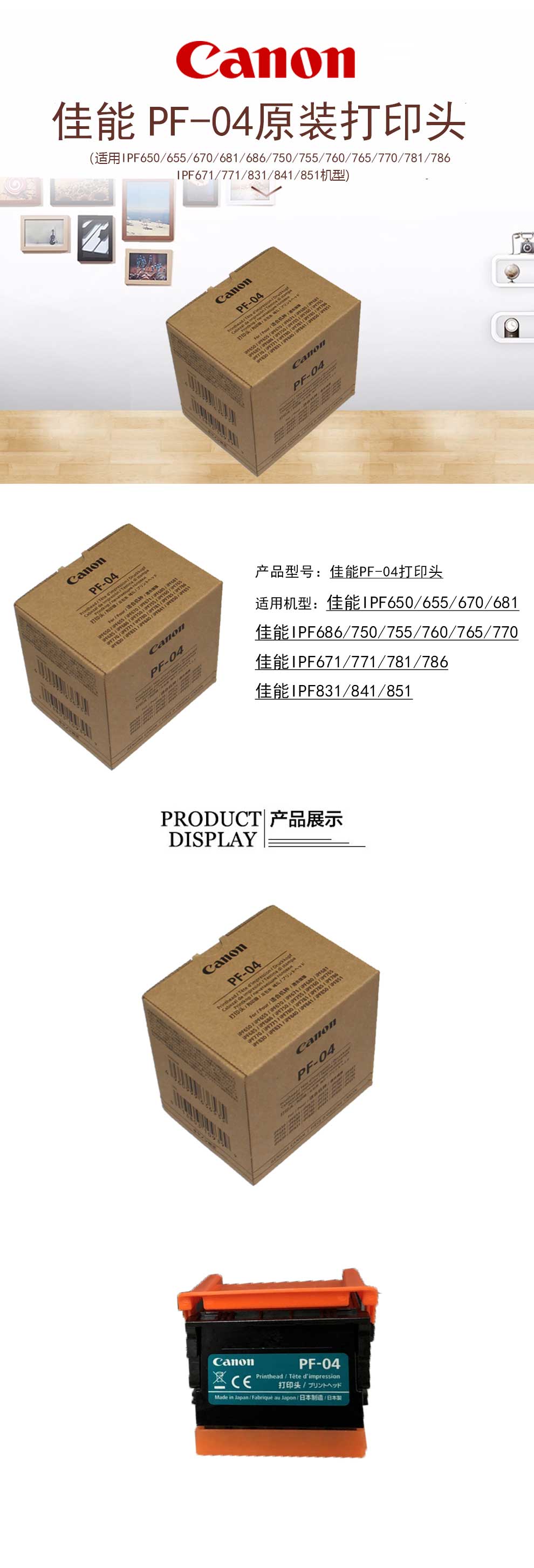 佳能(Canon)PF-04原裝打印頭IPF671/686/750/771/786/831/841