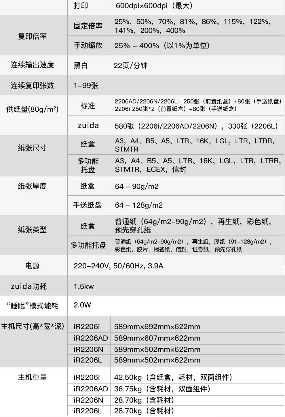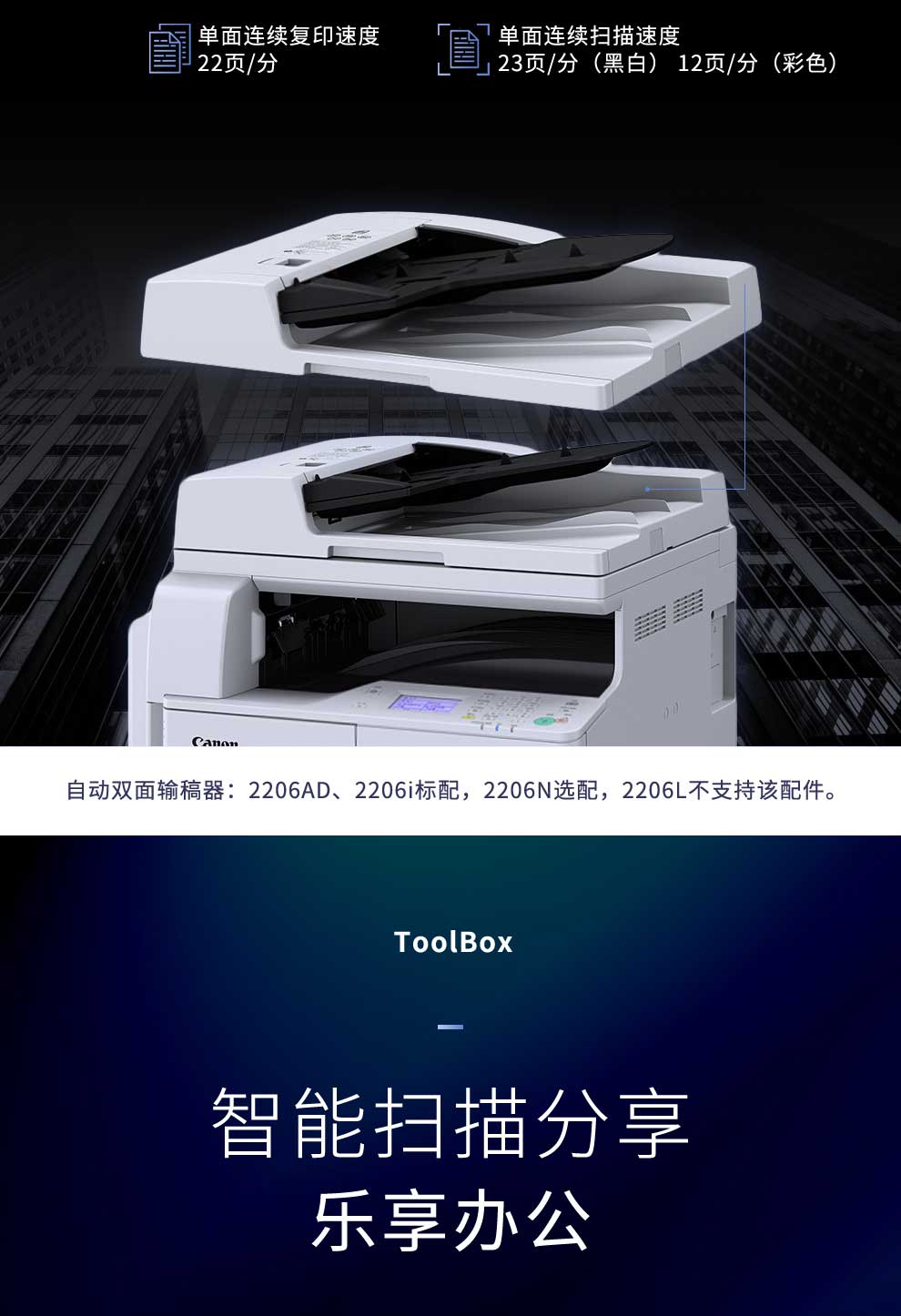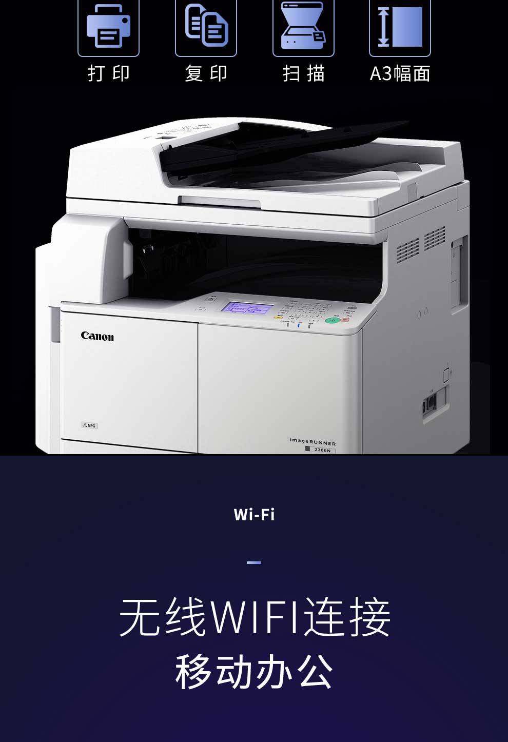 佳能 (Canon)iR2206AD 黑白激光A3數(shù)碼復(fù)合機  iR2206AD(主機+輸稿器+1紙盒+WIFI)