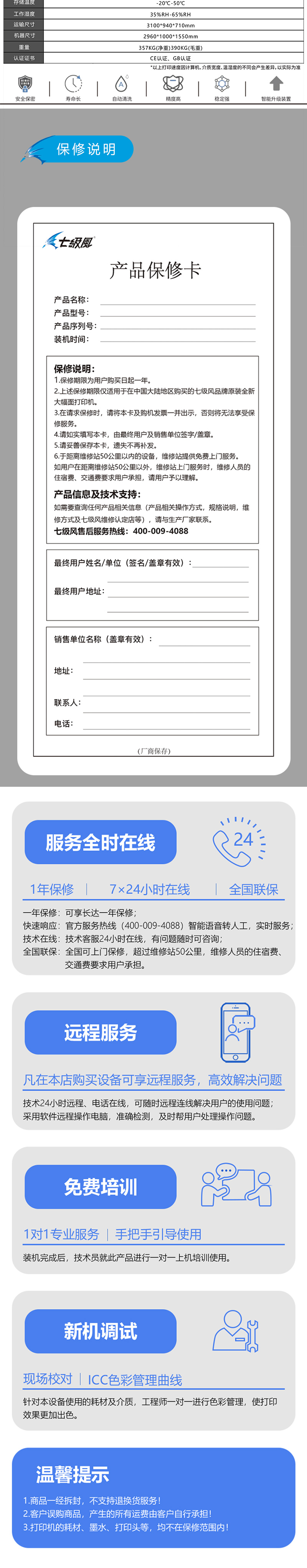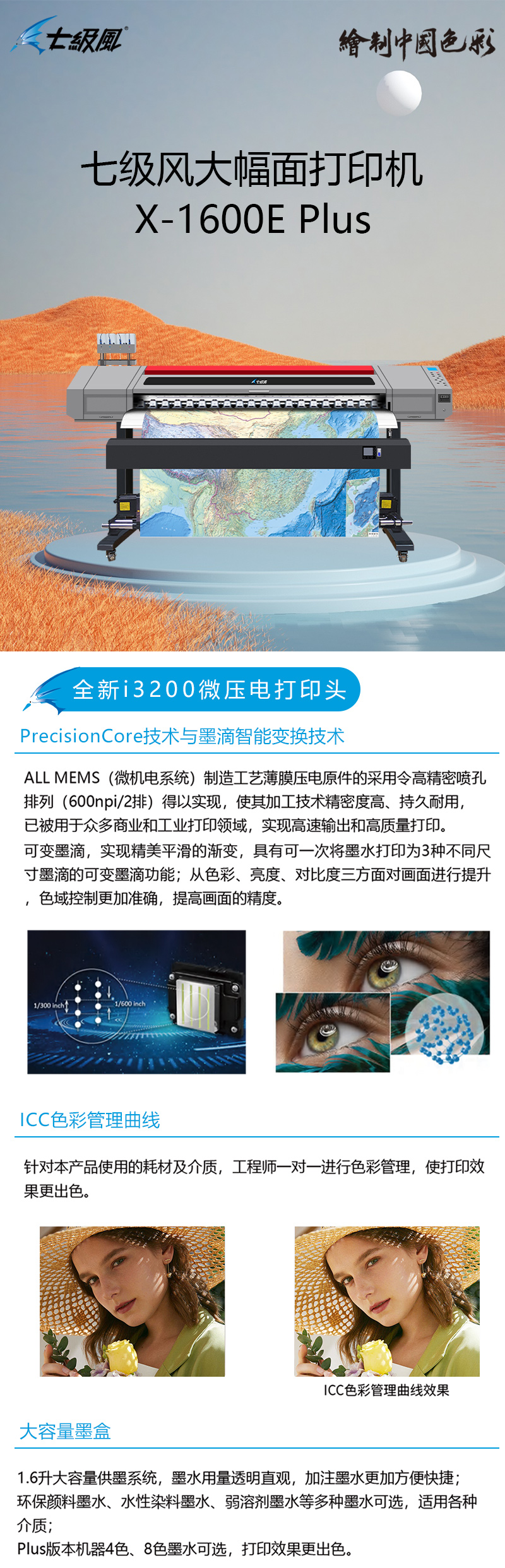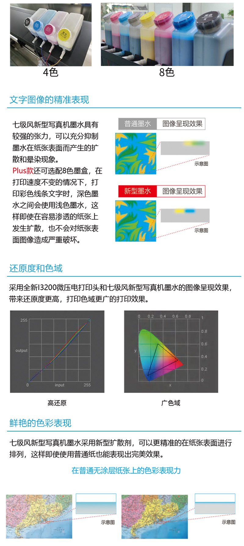 智能墨棧:自動清洗、吸墨、保濕功能,達到最佳的打樣效果,不易斷墨; 大容量墨盒:1.6升大容量墨盒,滿足長時間輸出供墨需求,提高工作效率; 安全保密:采用國產板卡電路,配備國產操作軟件,移除硬盤儲存,保障數據安全; 直流無刷電機:配備雙向無刷電機,高精度驅動線性解碼,精度更高,運行更穩(wěn)定; 智能羽化打印:獨創(chuàng)二維智能羽化功能,有效解決打印中的pass道,提升打印品質高度; 智能烘干系統(tǒng):打印與加熱同時進行,節(jié)約能源,實現(xiàn)多種墨水,即打即干,提高工作效率; 采用國際先進的Hiwin線性導軌系統(tǒng),使機器噪音低,運行平穩(wěn);全自動升降平臺和清洗系統(tǒng),節(jié)省時間精力,工作更高效;智能化設計,兼容多種打印軟件,支持Windows系統(tǒng)軟件直接輸出,使用更加得心應手。