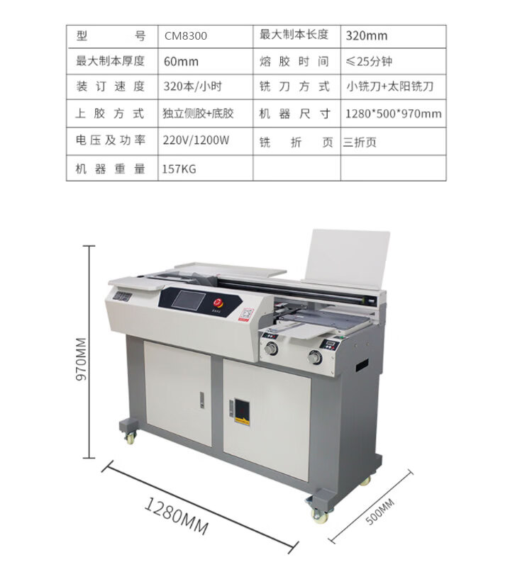七級(jí)風(fēng)膠裝機(jī)CM8300全自動(dòng)無(wú)線膠裝機(jī)制本320*297mm厚度60mm