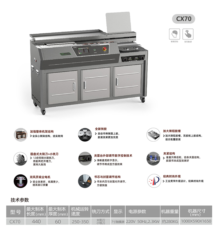 七級(jí)風(fēng)膠裝機(jī)CX70智能變頻變速膠裝機(jī)制本440*297mm厚度60mm