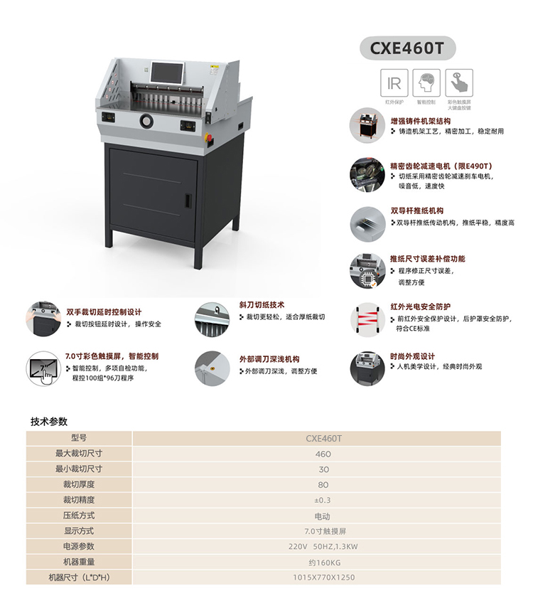 七級風切紙機CXE460T電動程控切紙機寬度460mm厚度60mm