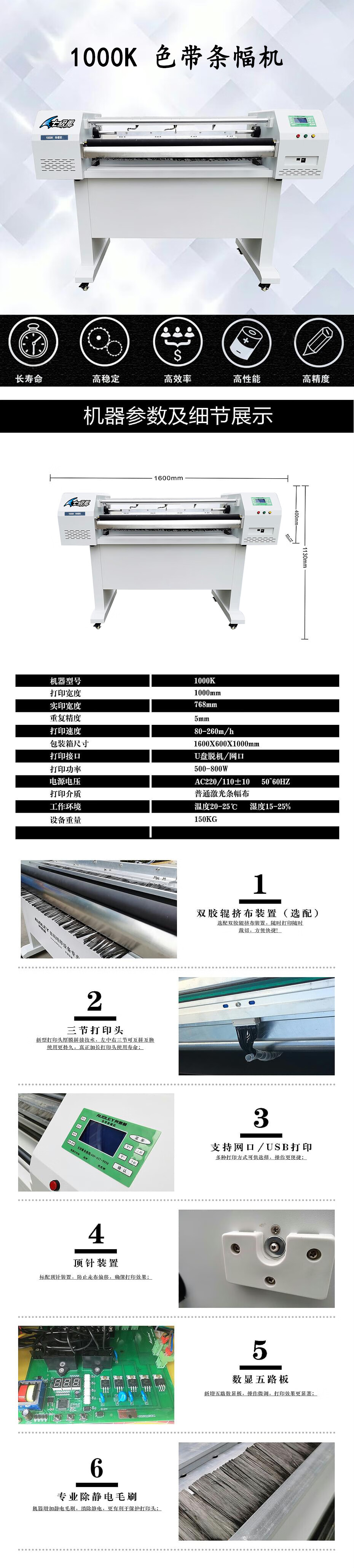 七級(jí)風(fēng)條幅機(jī)色帶打印1000K通用版廣告橫幅1.0米寬80-260M/h