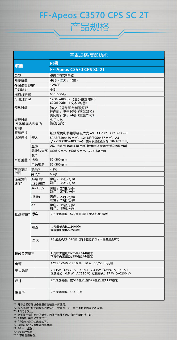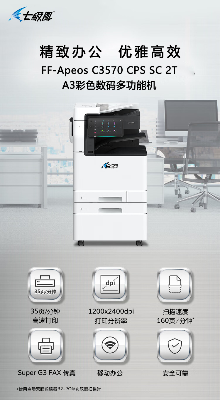 七級風(fēng)彩色激光打印機復(fù)合機 FF-Apeos C3570 CPS SC 2T 標配+雙紙盒 35速